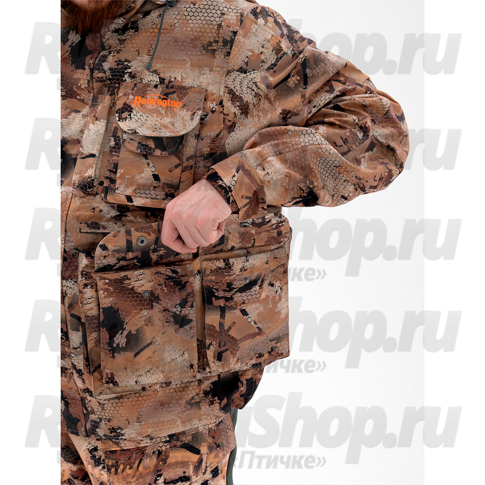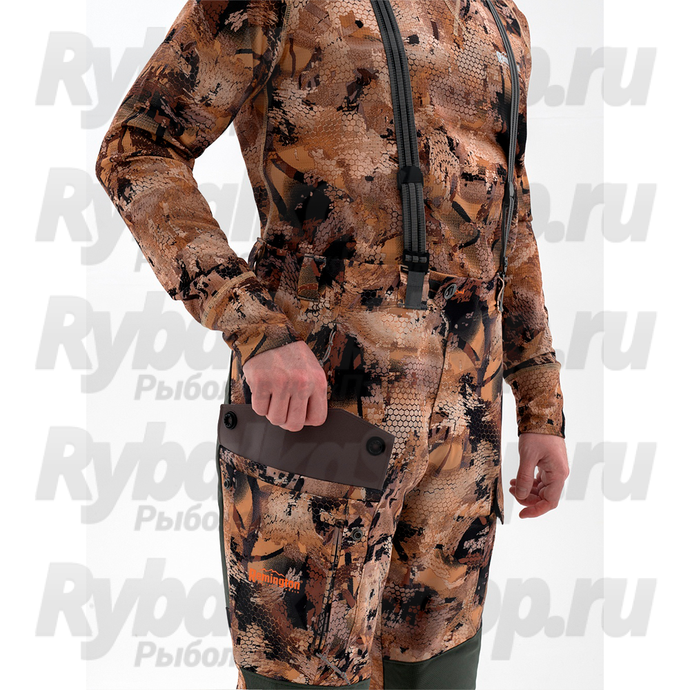 Демисезонный костюм Remington Mont Blanc Yellow Waterfowl Honeycombs состоит из куртки с капюшоном и брюк на подтяжках. Выполнен из мембраны с показателями: Паропроницаемость 10 000, Водонепроницаемость 12 000.