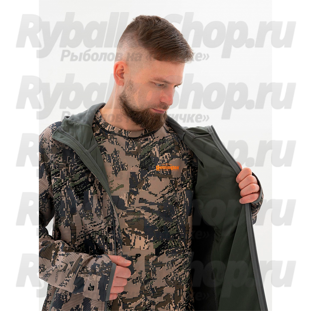 Костюм Remington Oreo  изготовлен из бесшумной ткани. Прекрасно подойдет для охоты или отдыха на природе. Наличие капюшона на куртке позволит обеспечить защиту от ветра и дождя. Внутренняя ветрозащитная планка на молнии станет дополнительной защитой от ветра. Плотное прилегание рукава обеспечивается резинкой, на рукаве имеется отверстие под палец. По низу изделия идет регулировка по объему кулисой. Мягкая флисовая подкладка на спине и внутри капюшона обеспечит сохранение тепла. Глубокие карманы в боковых швах позволят комфортно разместить руки, в брюках костюма также имеются 2 кармана в боковых швах. Благодаря наличию в поясе брюк резинки, обеспечивается хорошая посадка на различных типах фигуры, для дополнительной регулировки по объему в пояс вставлен шнурок. Манжета по низу брюк обеспечит защиту от пыли и холодного воздуха.