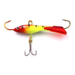 В голове и хвостовой части есть одинарные крючки жалом вверх. Снизу и сверху тела расположены две петли: верхняя для крепления лески, нижняя для тройника. Приманки прекрасно сбалансированы, что позволяет облавливать территорию вокруг лунки. Эти балансиры достигают прекрасных результатов при отвесной ловли хищных рыб.