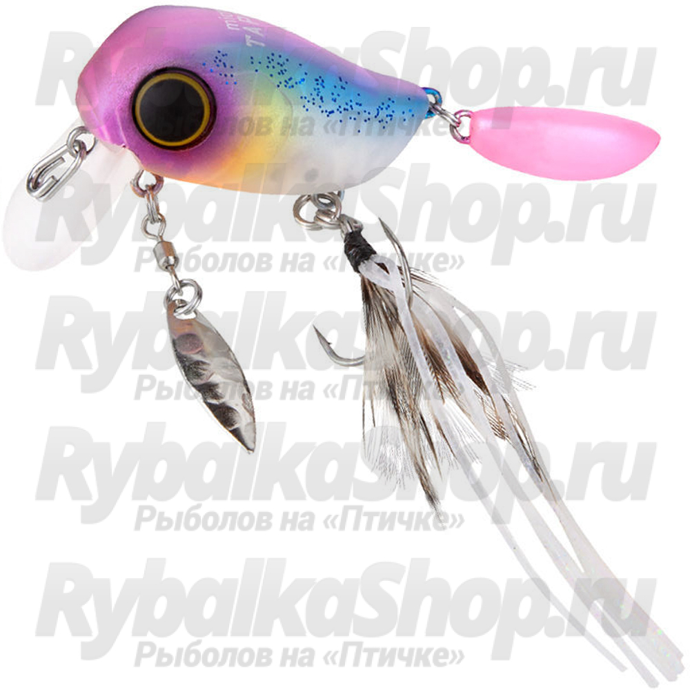 Важной особенностью Jackall Micro Tappy является оперение на тройном крючке, а также подвижные элементы в виде двух вращающихся лепестков на брюшке и хвостовой части воблера. На равномерной проводке они играют синхронно с приманкой, увеличивая частоту и интенсивность колебаний, что позволяет привлечь внимание окуня и белых хищников в теплой воде.