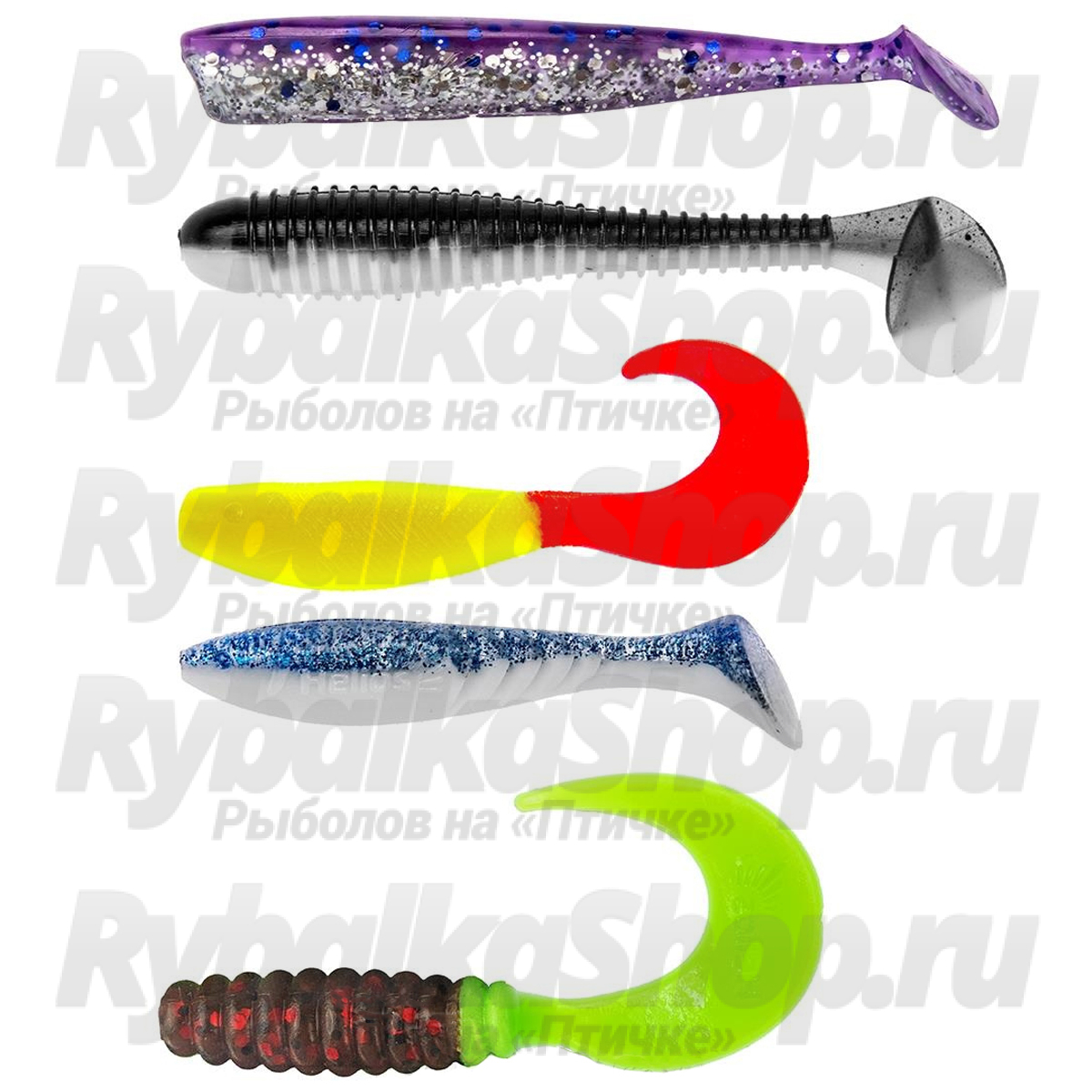 В набор Helios "Крупный окунь" входит пять приманок формы виброхвост и гибрид (твистер+виброхвост):