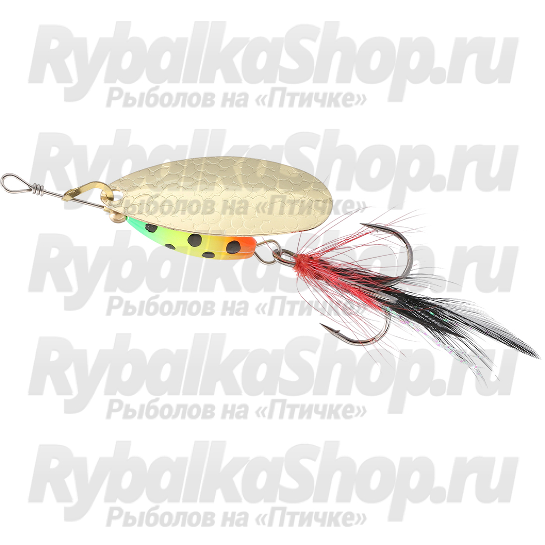 Блесна вращающаяся Mikado M-Grub с кисточкой №4 ( 13гр.) цвет GOLD/FIRETIGER (PMB-GRU-4-FT-G)