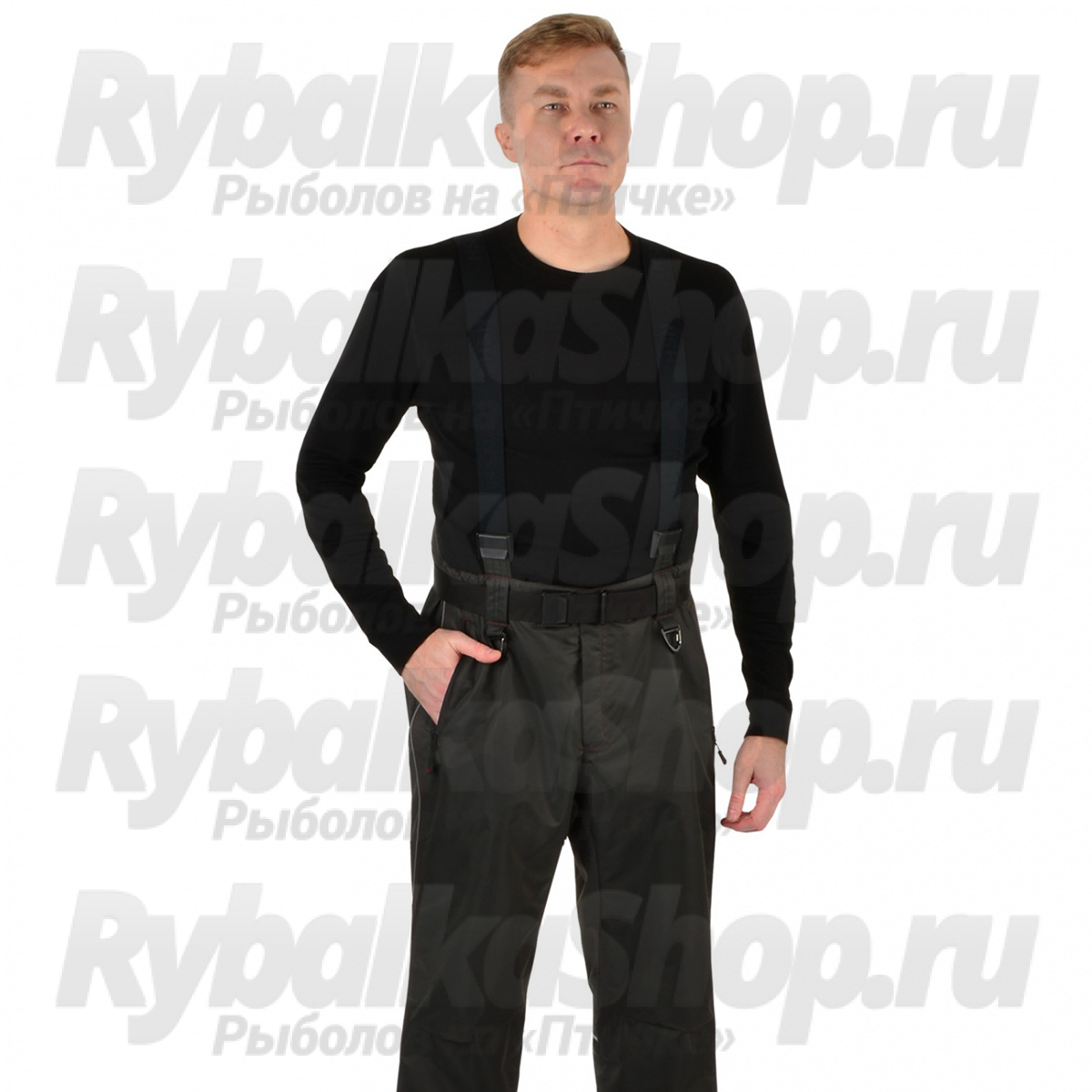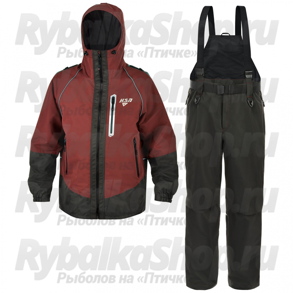 Костюм включает куртку и брюки с высокой спинкой, что делает его идеальным для активного отдыха. Высокая спинка обеспечивает:
