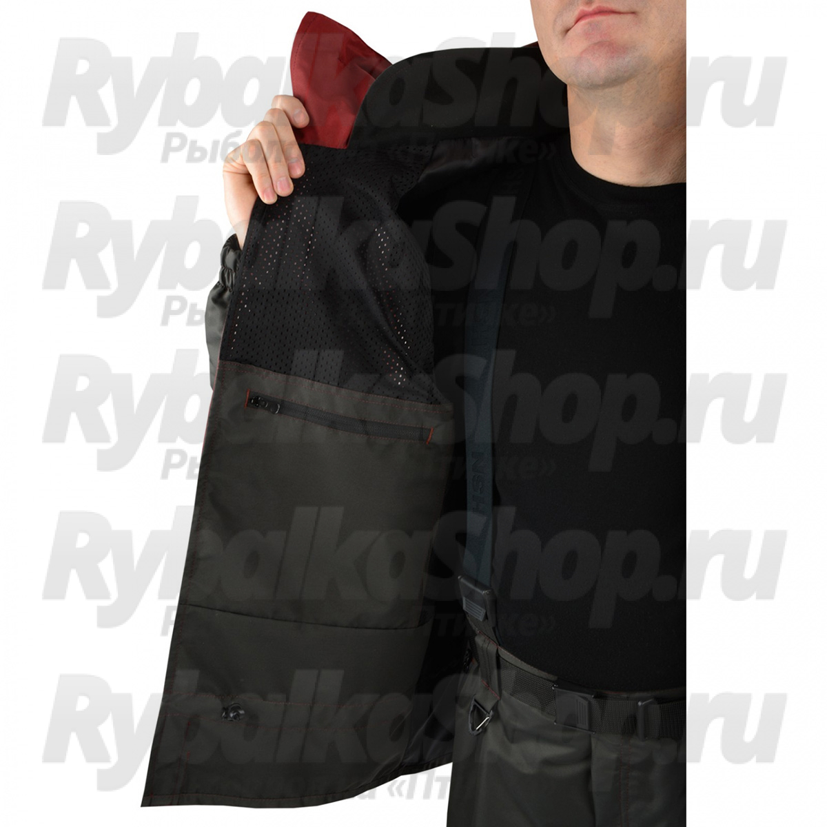 Костюм включает куртку и брюки с высокой спинкой, что делает его идеальным для активного отдыха. Высокая спинка обеспечивает: