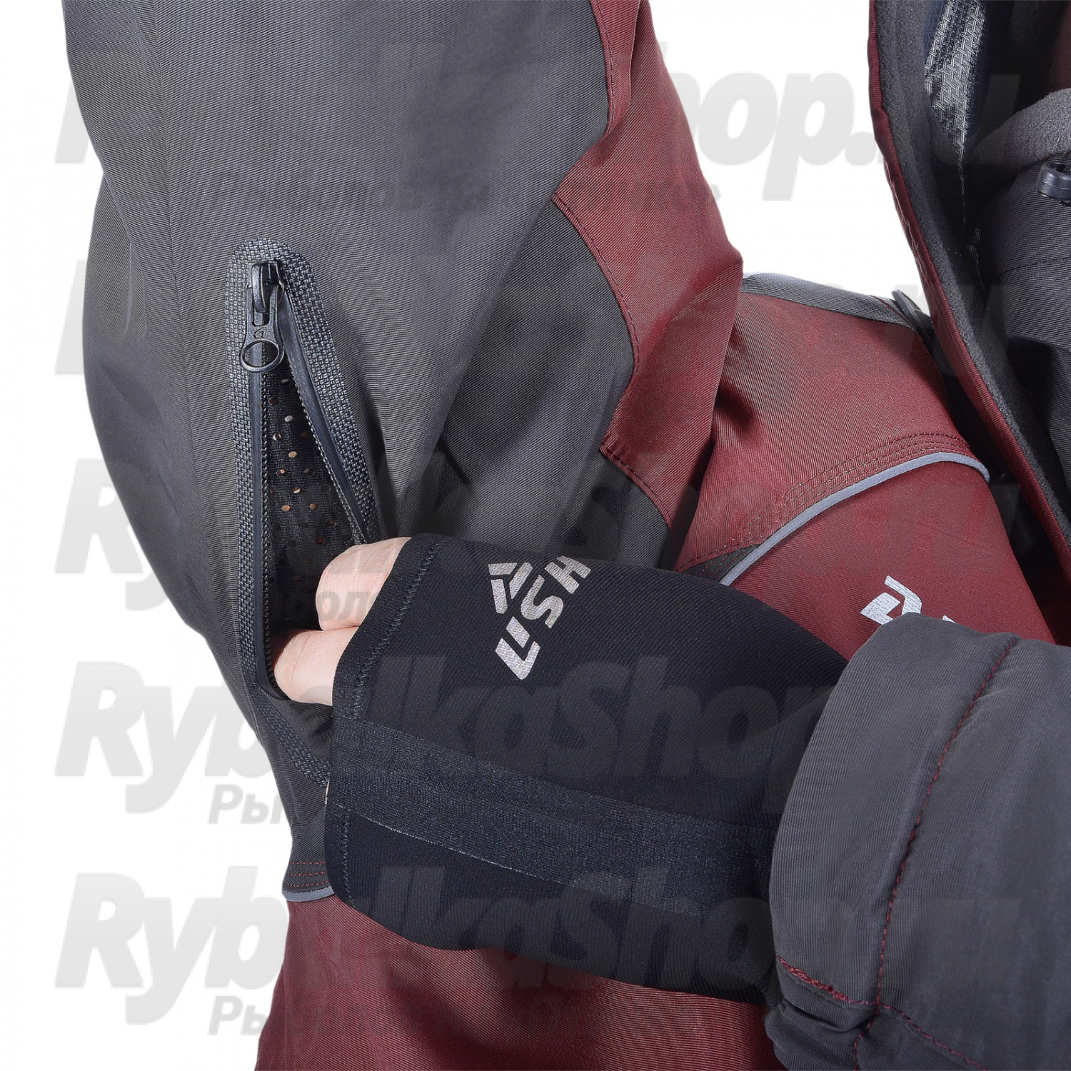 Специальные крепления на рукавах позволяют быстро использовать спасалки, входящие в комплект, в случае падения в воду. Неопреновые манжеты создают максимальный комфорт при контакте с водой. Перфорированные вставки на спинке и рукавах обеспечивают быстрое удаление воды из куртки, облегчая выход из воды при случайном падении. Внутренний влагозащитный карман сохраняет гаджеты сухими.