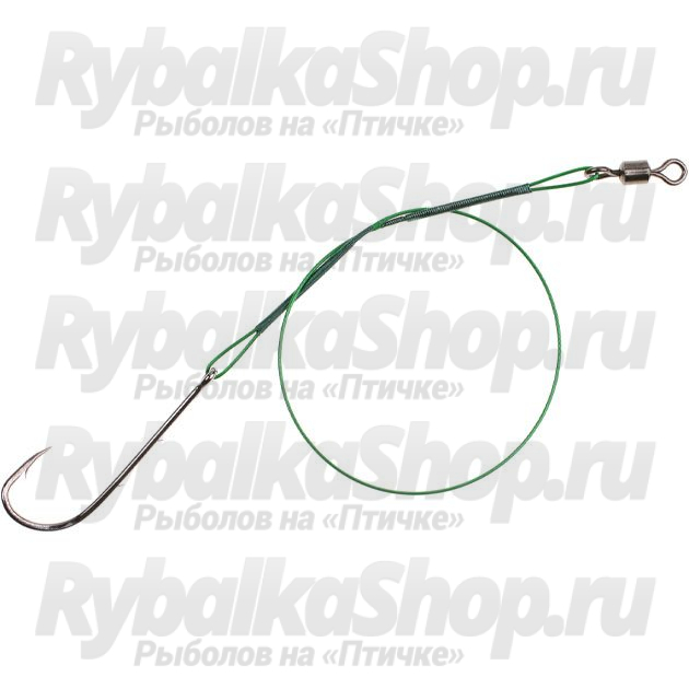 Поводок стальной Mikado X-Plode с крюком №8,7,6 (уп.30 шт.) вертлюг №4, зелёный (Арт.ZG11-014-30)