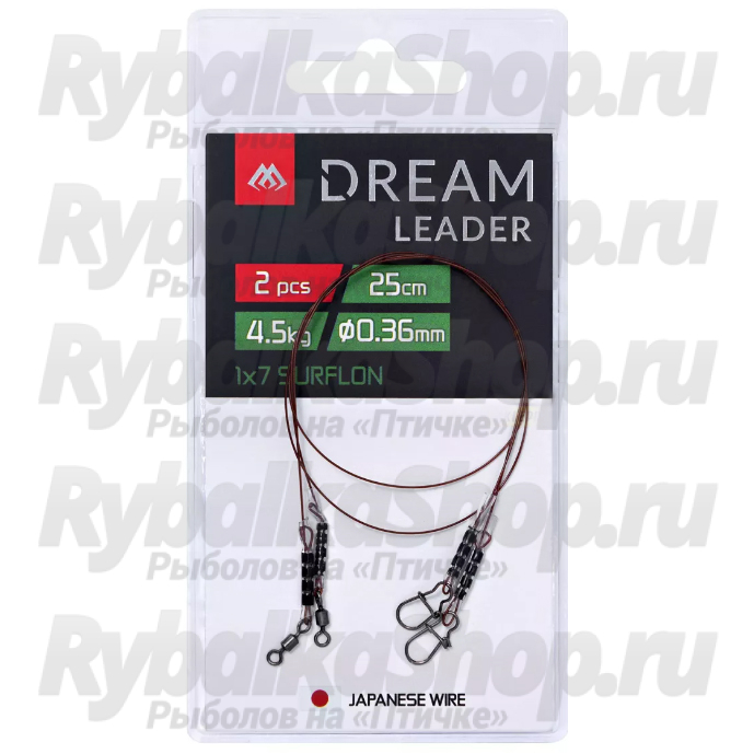 Поводок Mikado Dream Leader Surflon 1x7 ( 40cm/10LB/4.5kg ) 2 шт. (ZGDL01-40-10)