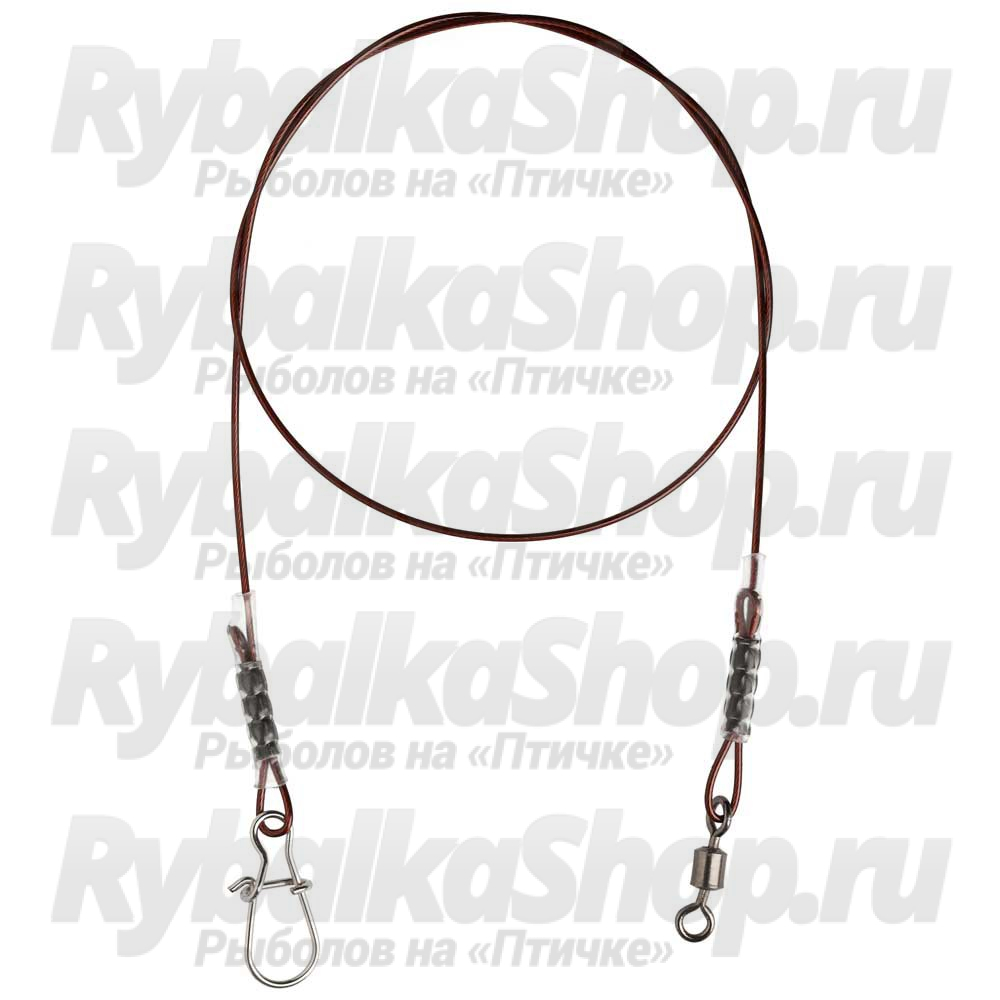 Поводок Mikado Dream Leader Surflon 1x7 для спиннинговой ловли из Surflon. Внутри стальной семижильный плетёный сердечник, покрытый снаружи силиконом. Установлена самая качественная фурнитура Mikado, марки JAWS. Опрессовка узлов покрыта термоусадкой.