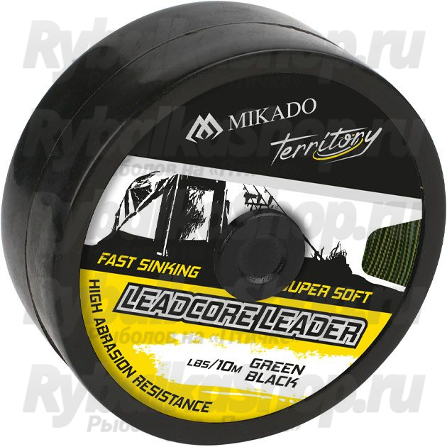 Лидкор со свинцовым сердечником Mikado Territory Leadcore Leader (45LB, 10м ) чёрно-зелёный (AMC-LL45B/G)