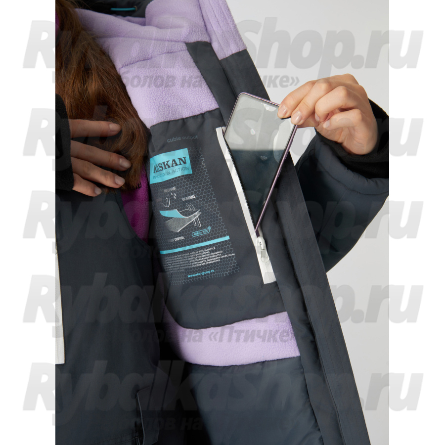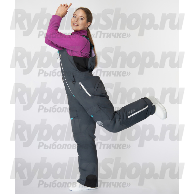 В куртке и полукомбинезоне есть множество карманов для разных мелочей, в том числе и специальные карманы для согревания рук по низу куртки. Регулировки на капюшоне и по низу куртки создают дополнительную защиту от сильного ветра. В полукомбинезоне есть гигиеническая молния сзади и спроектированы эластичные вставки по бокам для расширения объема в области груди и живота. В костюме Alaskan Vanda сложно остаться незамеченной на зимней рыбалке, а светоотражающие принты помогут выделить вас в темноте.