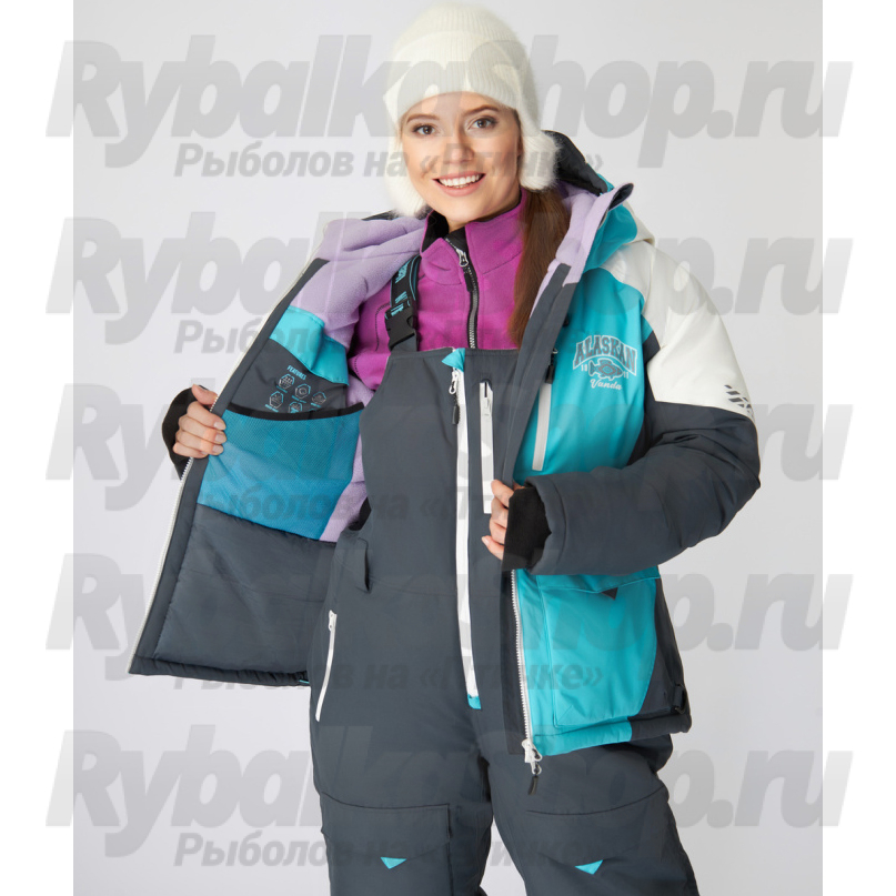 Alaskan Vanda — современный и яркий женский костюм, созданный специально для любительниц зимней рыбалки и отдыха на природе. Костюм выполнен из прочной и функциональной ткани, имеет проклеенные швы и эргономичный крой для максимальной свободы движений, а приталенный силуэт подчеркнет красоту женской фигуры. Для костюма использован современный и технологичный утеплитель Sofeelate, обладающий терморегулирующими и теплоизолирующими свойствами. Благодаря тончайшим волокнам Sofeelate не утяжеляет костюм.