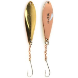 Блесна Puustjarven NYPYS - вертикальная зимняя блесна, оснащенная одинарным крюком на цепочке. Такое оснащение позволяет подсаживать натуральные или искусственные насадки для большего привлечения рыбы и соответственно повышает шанс на поклевку. Очень интересная форма, за счет того, что одна сторона приманки загнута, игра преобретает свою уникальность и неповторимость. Хорошо ловит крупного окуня и щуку.