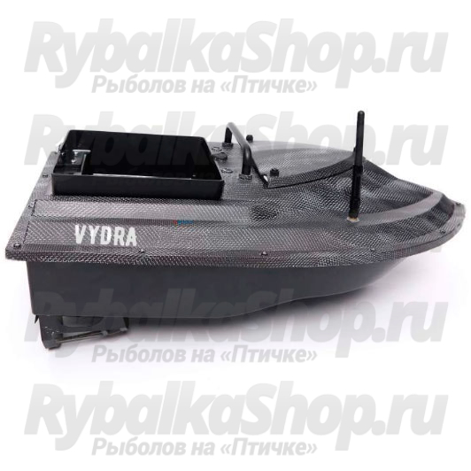 Кораблик имеет один центральный отсек верхней загрузки, который вмещает до 3000 граммов прикормки. Открытие и закрытие отсека осуществляется простым нажатием кнопки на пульте управления. VYDRA TURBO может буксировать различные оснастки, включая донные и поплавочные монтажи, а также спиннинговые приманки.