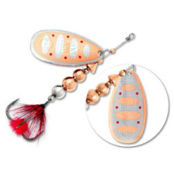 Имеется 2 острых тройника, соединяемых с воблером при помощи колец. Фурнитура и крючки не поддаются воздействию процессов коррозии.