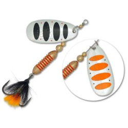 Имеется 2 острых тройника, соединяемых с воблером при помощи колец. Фурнитура и крючки не поддаются воздействию процессов коррозии.