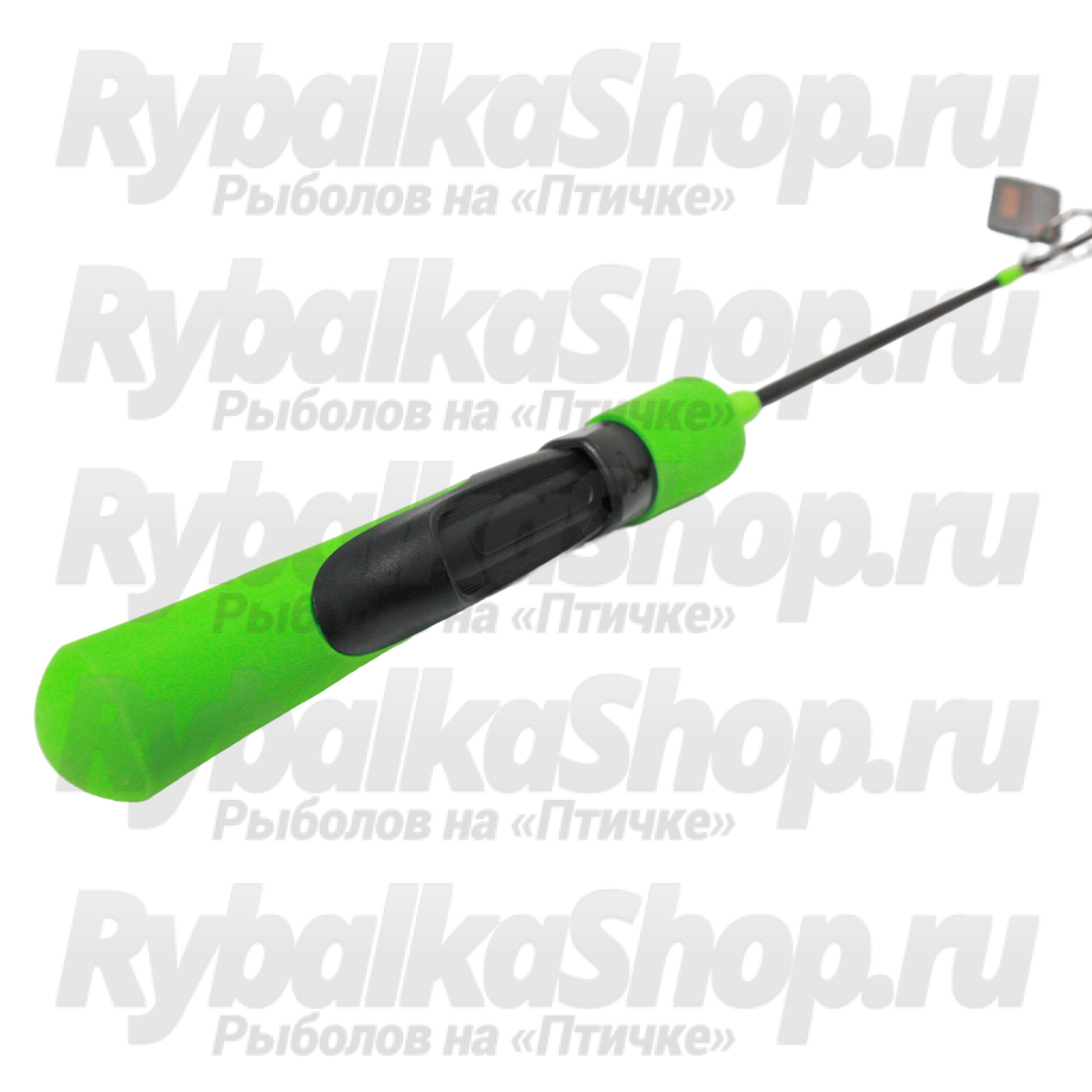 Рукоять выполнена из практичной EVA, которая окрашена в яркий зеленый цвет для лучшей заметности. Катушкодержатель имеет переднюю гайку. Идеально подходит для ловли с зимними мультипликаторными катушками.
