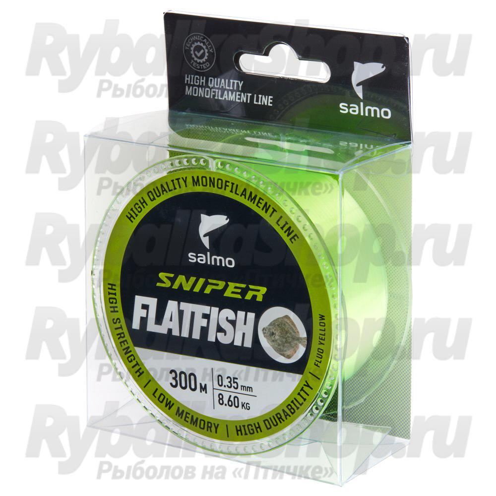 Леска Salmo Sniper Flatfish Fluo Yellow 300m обладает хорошими показателями прочности, как линейной, так и на узле. Низкий коэффициент растяжимости позволяет чётко регистрировать даже самые осторожные поклёвки.