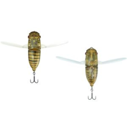 К твердой пластиковой голове цикады Jackall Suisen 43F присоединены мягкие крылья и мягкое полое тело, гармонирующее по цвету с головой. Слегка наклоненные вниз крылья немедленно приходят в движение даже при легком натяжении лески и придают приманке характерную, своеобразную игру. Подойдёт для ловли голавля и жереха.
