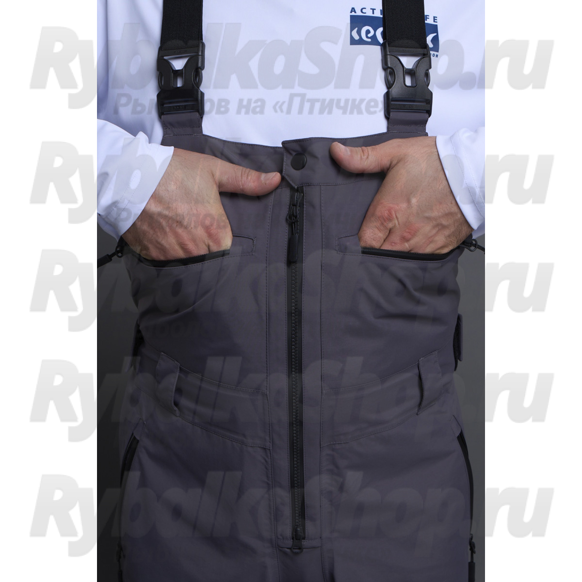 Полукомбинезон: Легкий, непромокаемый полукомбинезон из надежной трехслойной мембранной ткани. Высокая спинка надежно защищает поясницу и часть спины от холода и ветра. Удобные широкие бретели, регулируются по длине. Размер по талии можно изменить с помощью хлястиков на липучке, расположенных на поясе комбинезона. Анатомический крой полукомбинезона абсолютно не стесняет движений. Шлёвки на поясе под ремень. Все швы проклеены.