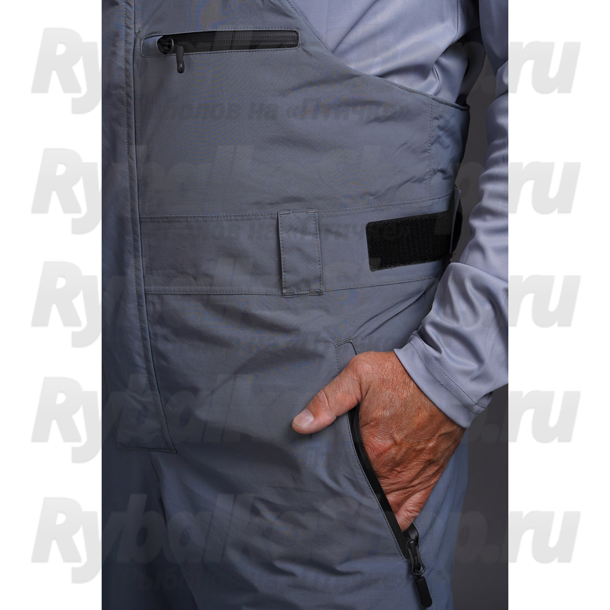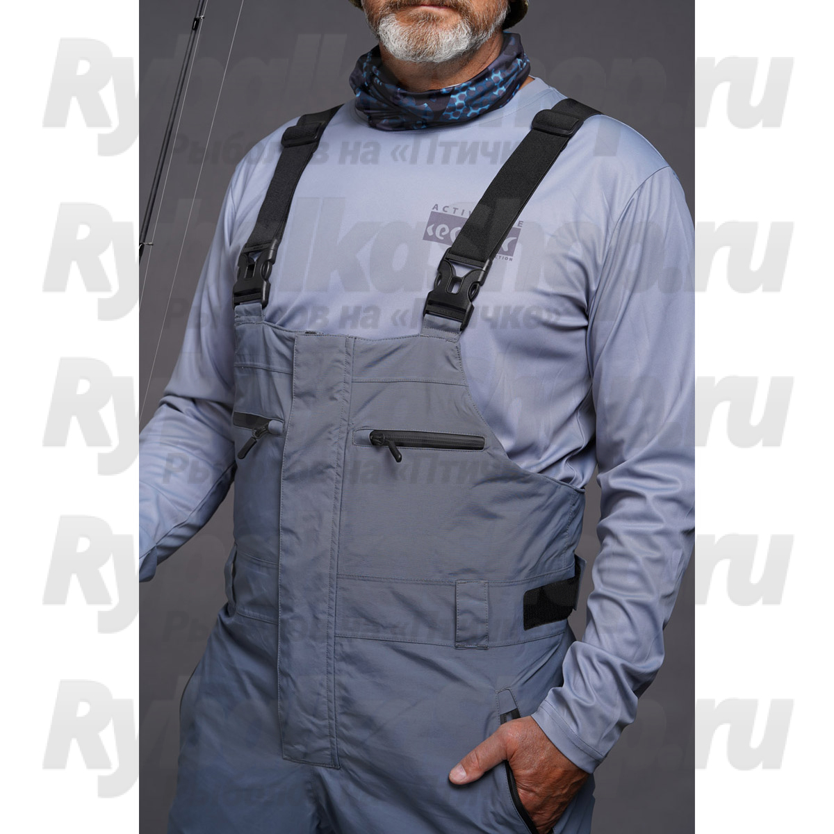 Полукомбинезон. Легкий, теплый, высокий абсолютно непромокаемый полукомбинезон из надежной мембранной ткани. Высокая спинка надежно защищает поясницу и часть спины от холода и ветра. Удобные широкие бретели, регулируются по длине. Размер по талии можно изменить с помощью хлястиков на липучке, расположенных на поясе комбинезона. Анатомический крой полукомбинезона абсолютно не стесняет движений. Малошуршащий материал. Рекомендован охотникам.