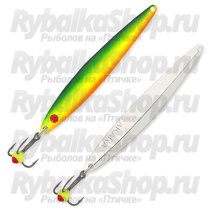Блесна зимняя Akara Ice Keinu - одна из самых уловистых зимних блесен для ловли крупного окуня. Форма блесны очень многогранна, что делает её игру весьма нестандартной. Блесны серии Ice Keinu имеют вклеенный красный камень в хвостовой части приманки, что делает блесну значительно уловистей. Внутренняя вогнутость делает блесну значительно более парящей в воде. При ловле этой блесной можно применять очень разнообразные взмахи, перехлесты вас не будут беспокоить. Варьируя амплитуду и резкость взмахов можно добиться разнообразной игры и подобрать ключик к капризной рыбе.