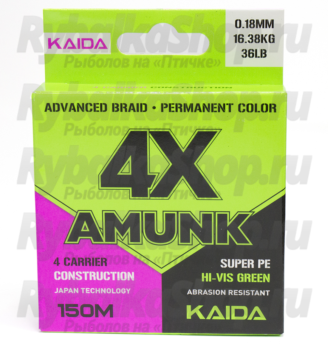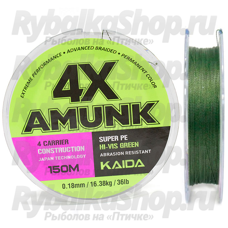 Kaida Amunk Super PE 4x Green - плетеные шнуры с отличными показателями прочности и износостойкости. Шнур имеет хорошую информативность и полное отсутствие растяжимости. Плотное плетение из 4х жил делает поверхность шнура более ровным и гладким, что положительно сказывается на качестве и дальности заброса. Серия AMUNK является универсальной: шнуры можно использовать в спиннинговой ловле, так и в фидерной.