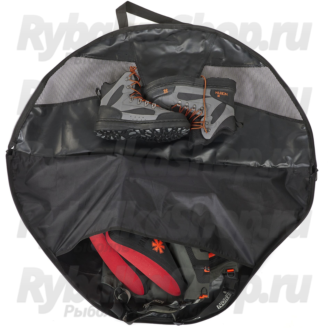 Сумка для вейдерсов Norfin Riverside, идеальна для хранения и переноски вейдерсов, незаменимый аксессуар для любителей рыбалки и активного отдыха на природе. Сохранит ваши вещи в чистоте. Сумка оснащена воздушными клапанами для проветривания и сушки сырой одежды и обуви. Сумка изготовлена из прочной ткани, которая обеспечивает долговечность и надежность изделия. Благодаря качественному полиуретановому покрытию сумка не боится влаги, грязи и механических повреждений. Сумка также может использоваться в качестве коврика для переодевания. Сумка Norfin Riverside имеет круглую форму, что позволяет ей легко открываться и образовывать ровную поверхность. Это особенно удобно при использовании ее в качестве коврика.