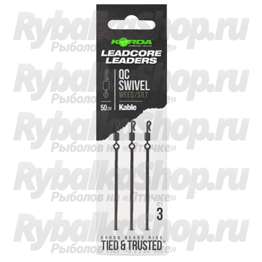 Монтаж готовый Korda Kable Leadcore Leader QC Swivel 50см Набор из трех, полностью готовых к использованию плетеных шоклидеров. На лидеры интегрированы вертлюги с быстросъёмом. В качестве материала был выбран очень мягкий и гибкий Korda Kable Leadcore.
