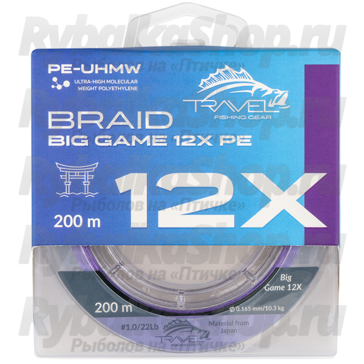 Серия Travel Big Game 12x PE 200m - флагманская серия двенадцатижильных ультрамощных чувствительных шнуров для сверхдальних забросов.