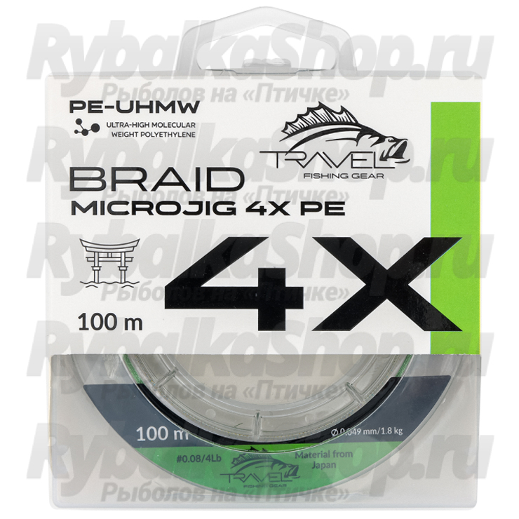 Плетёный шнур Travel Microjig 4x PE 100m #0.4/9lb (0.104 мм/ 4.1кг)