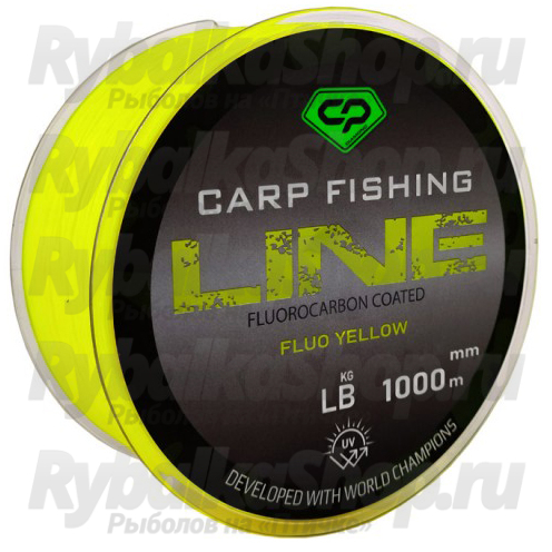 CARP PRO Леска Fluorocarbon Coated Fluo Yellow 1000 м – высокочувствительная леска с премиальным флюорокарбоновым покрытием для точной ловли в любых условиях!