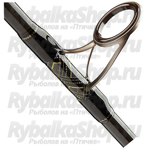 Катушкодержатель оснащен двумя винтами, что позволяет надежно зафиксировать катушку . Оригинальный дизайн оплетки комеля черно-золотого цвета является логическим завершение утонченного дизайна удилища. Сделано из высокомодульного углепластика, оснащено кольцами из оксида титана на двойной лапке, рукояткой EVA и украшено высококлассной оплеткой