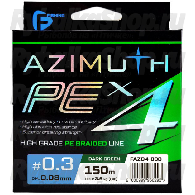 F-Fishing Azimuth PE X4 - высококачественный рыболовный шнур изготовлен с использованием современного PE материала при участии рыболовов-спортсменов. предназначен для ловли спиннингом. Благодаря плотному круглому плетению, быстро тонет и обладает минимальной парусностью на течении и ветре.