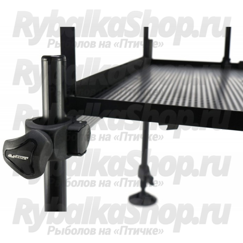 Алюминиевый столик Elegance Feeder Pro для фидерного кресла или платформы имеющий две рабочие поверхности в разных уровнях. Размер нижней 67х50см, верхней 63х26см. Для большей устойчивости столик оборудован двумя регулируемыми телескопическими ножками диаметром 25 мм с широкими устойчивыми пятками.