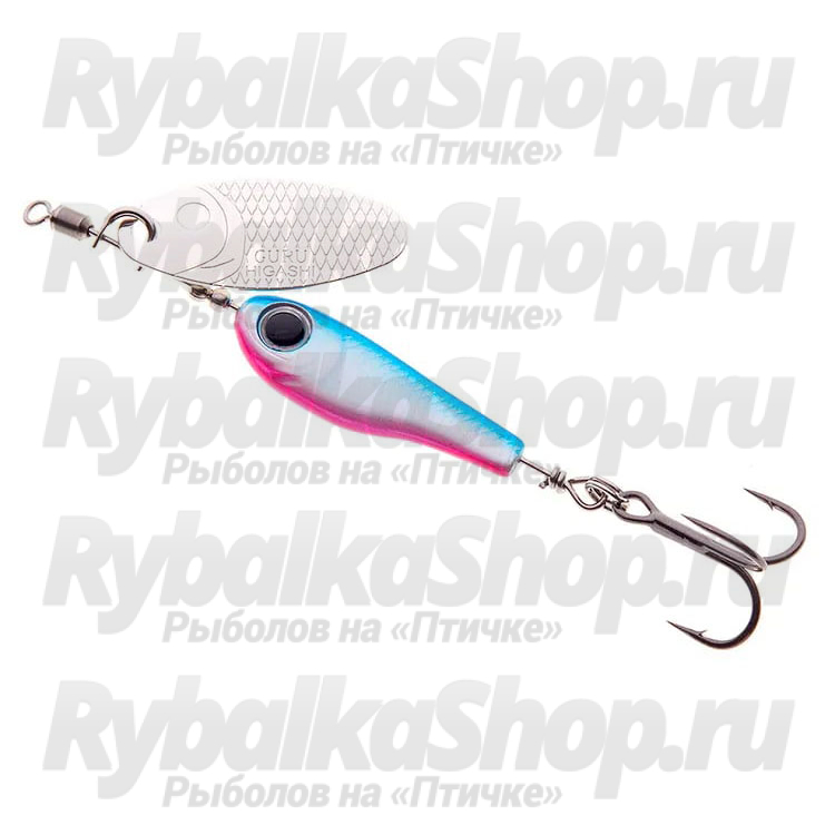 Сердечник блесны HIGASHI GURU выполнен в виде реалистичного тела рыбки, но с увеличенными по размеру глазами- они являются отличным раздражительным фактором, провоцирующим хищника на немедленную атаку. Плоский профиль в виде тела рыбки не только более заметный, создает специфические блики, но и имеет и свою собственную игру. Для оптимизации работы блесны на течении - в ось блесны интегрирован вертлюжок с колечком.