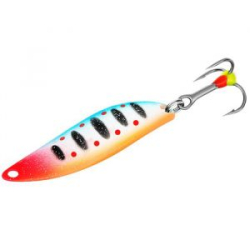 Блесна оснащена двумя прочными заводными кольцами из нержавеющей стали. Остро заточенный одинарный крючок с бородкой легко проникает в пасть рыбы при подсечке и надёжно удерживает её.