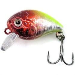 Особенности дизайна: KIKI MR 54F не похож на остальные воблеры-кренки, поскольку имеет в своей конструкции ряд оригинальных дополнительных элементов, призванных привлечь внимание хищной рыбы. Под брюшком у приманки находится подвижный металлический лепесток, который вращается при проводке, в задней части – жесткий пластиковый хвостик, который при движении в воде колеблется из стороны в сторону, а единственный тройник воблера оснащён мушкой из перьев и довольно длинных силиконовых нитей. Головная часть KIKI MR 54F рельефно имитирует жаберные крышки, а вклеенные объемные 3D глаза завершают реалистичный дизайн приманки.