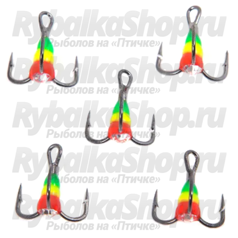 Крючок-тройник светофор Namazu с каплей и камнем, размер 18 (INT), цвет RYG (5 шт.)