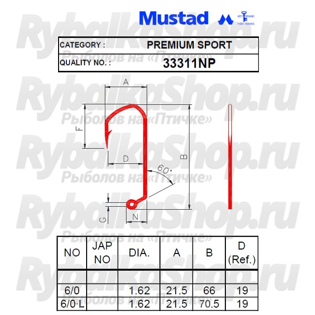 Описание Mustad 33311NP-BN, 120°, 6/0 (L - 70,5 мм)