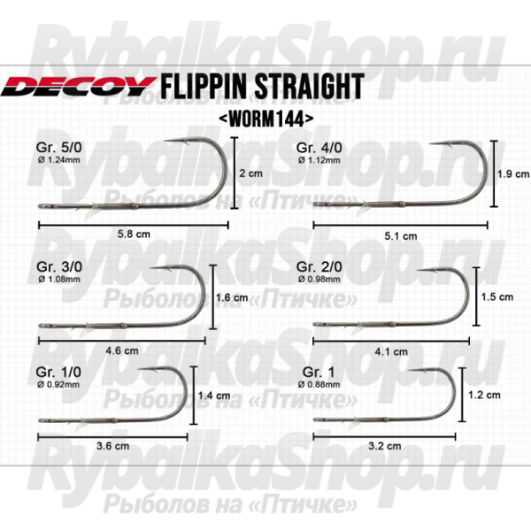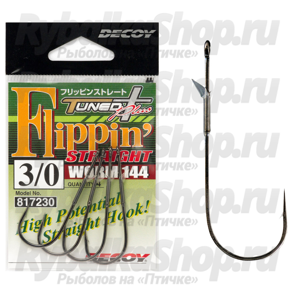 Крючок одинарный Decoy Worm 144 Flippin Straight идеально подходит для оснастки различных мягких приманок – от червей и слизней до твистеров и других приманок с узким телом.