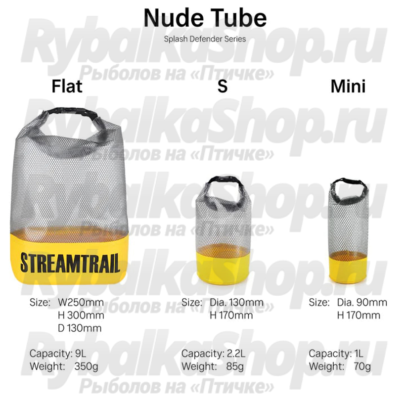 Stream Trail Nude Tube - линейка компактных гермомешков сохранит ваши ценные вещи в сухости во время отдыха у воды. Прозрачный армированный материал позволяет видеть содержимое, а усиленное дно продлевает срок службы изделия. Верх ролл-топ удобен в использовании и не позволяет воде попасть внутрь мешка.