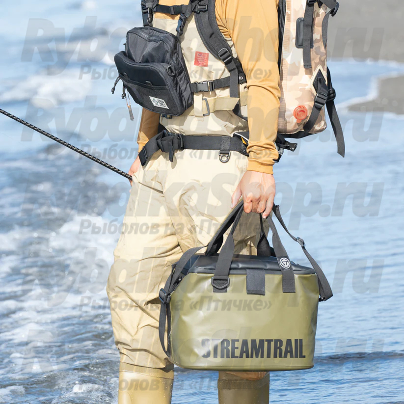 Stream Trail Mactra — это дорожная сумка квадратной формы объёмом 25 л. Дно сумки полностью герметично, а отверстие сумки оснащено водонепроницаемой молнией для лёгкого открывания. Сумка защищена только от брызг, но не водонепроницаема. Сумка подходит для замачивания и мытья снаряжения после использования.