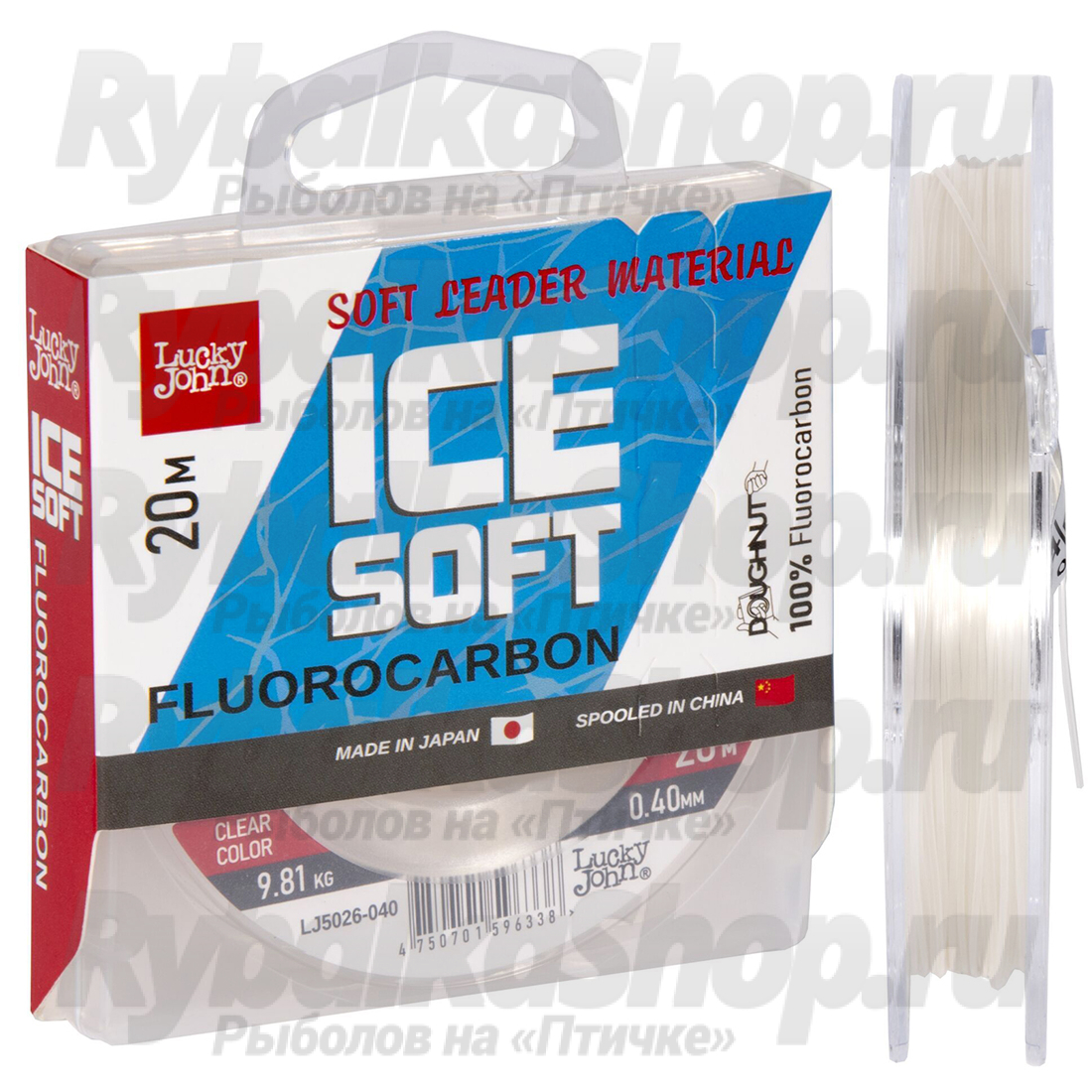 Специальная мягкая леска Lucky John Ice Soft Fluorocarbon 20m из флюорокарбона для ловли крупной, сильной рыбы из-подо льда. Может использоваться как в качестве основной лески (более тонкие диаметры), так и в качестве поводков и шок-лидеров.