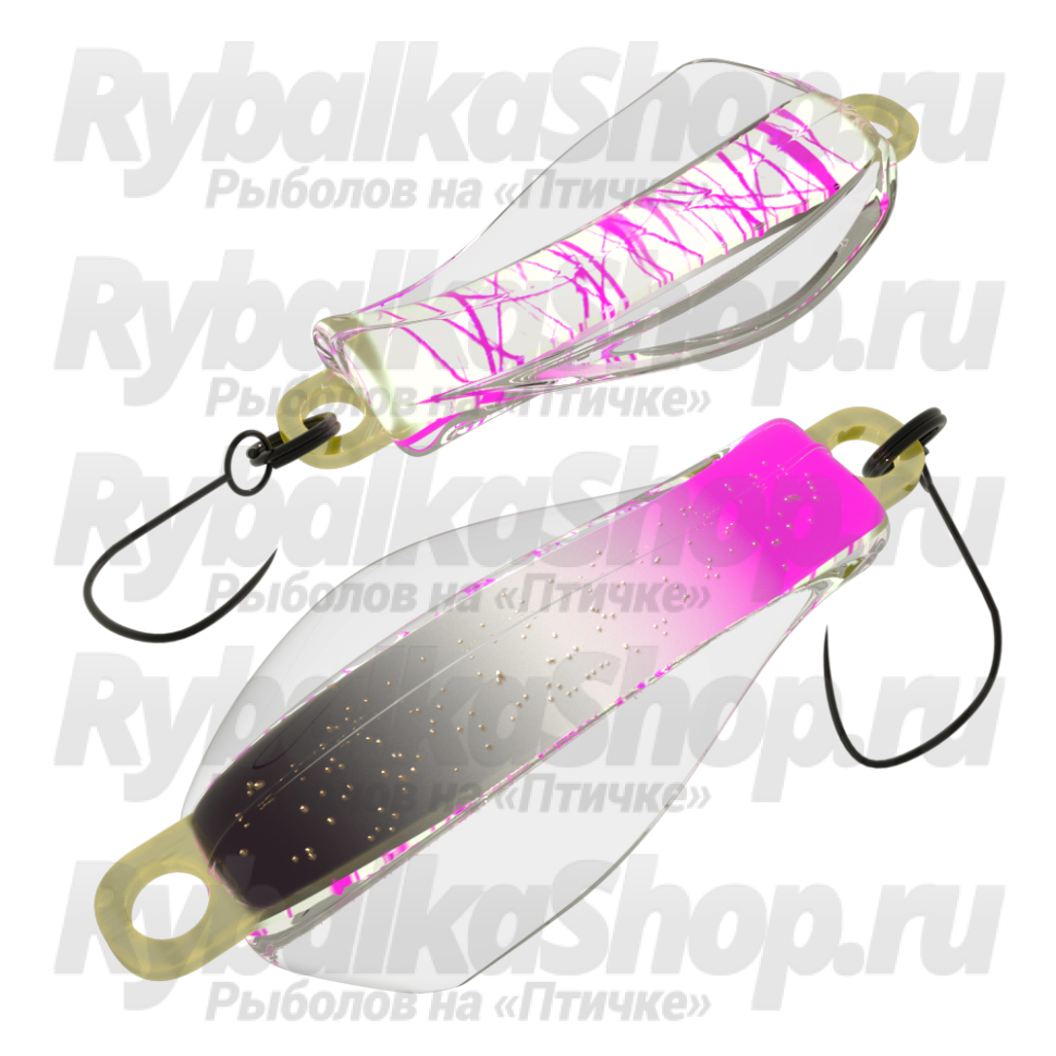 Iron Trout Cobra - новинка 2025 года - оригинальная приманка длиной 40 мм, разработанная для ловли форели. Представляет собой яркую цветную пластину с ассиметричными, относительно поперечной оси блесны, крыльями. Один конец заканчивается петлей для крепления приманки к леске, а на другом на заводном кольце установлен одинарный безбородый крючок Vanfook SP-41F Fusso Black #6.