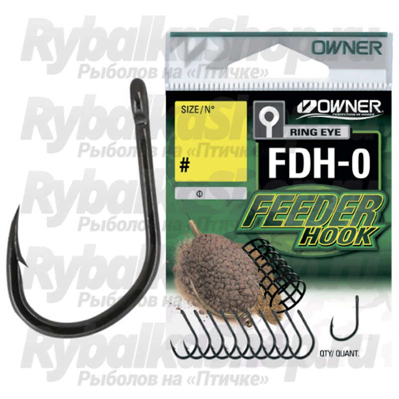 Owner Feeder Hook FDH-0 BC - достаточно мощный крючок карпового направления. Модель с коротким цевьем, круглым, кованым поддевом и загнутым внутрь жалом. Рассчитан на применение с растительными насадками и ловлю крупной рыбы. Крепежный элемент - ушко.