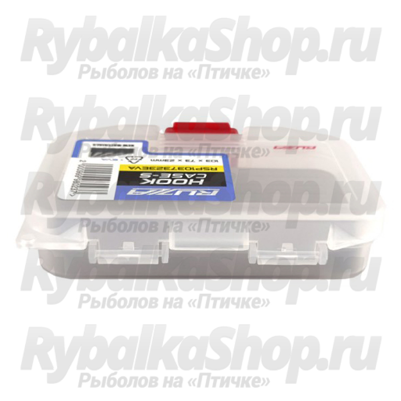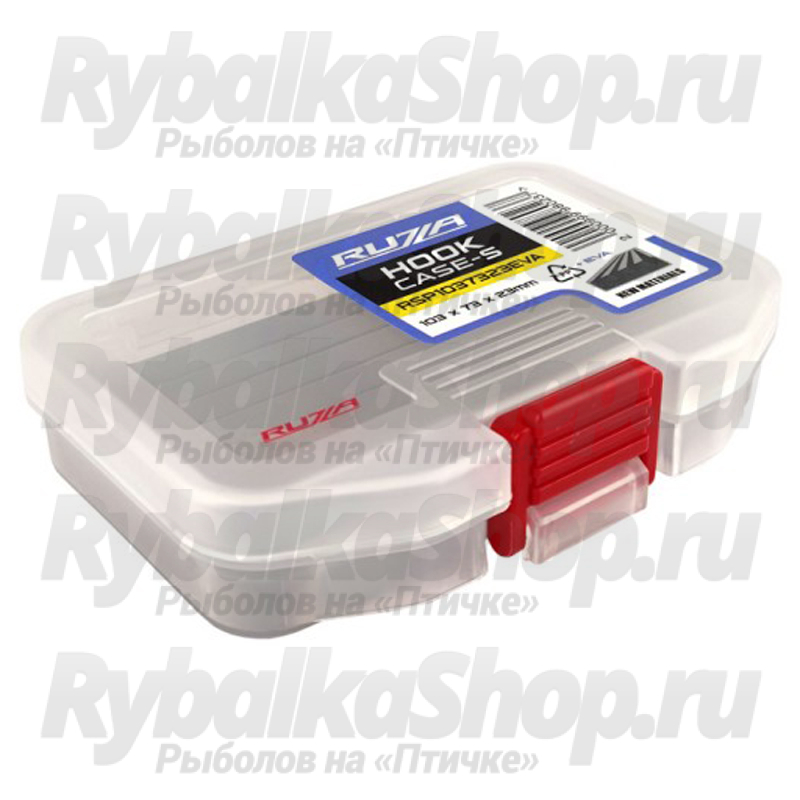 Односторонняя коробка Ruzza из ударопрочного армированного пластика PP (полипропилен). Отсек снабжен плотной вспененной подложкой из EVA (этиленвинилацетат) с прорезями для надёжного хранения крючков и некрупных приманок.