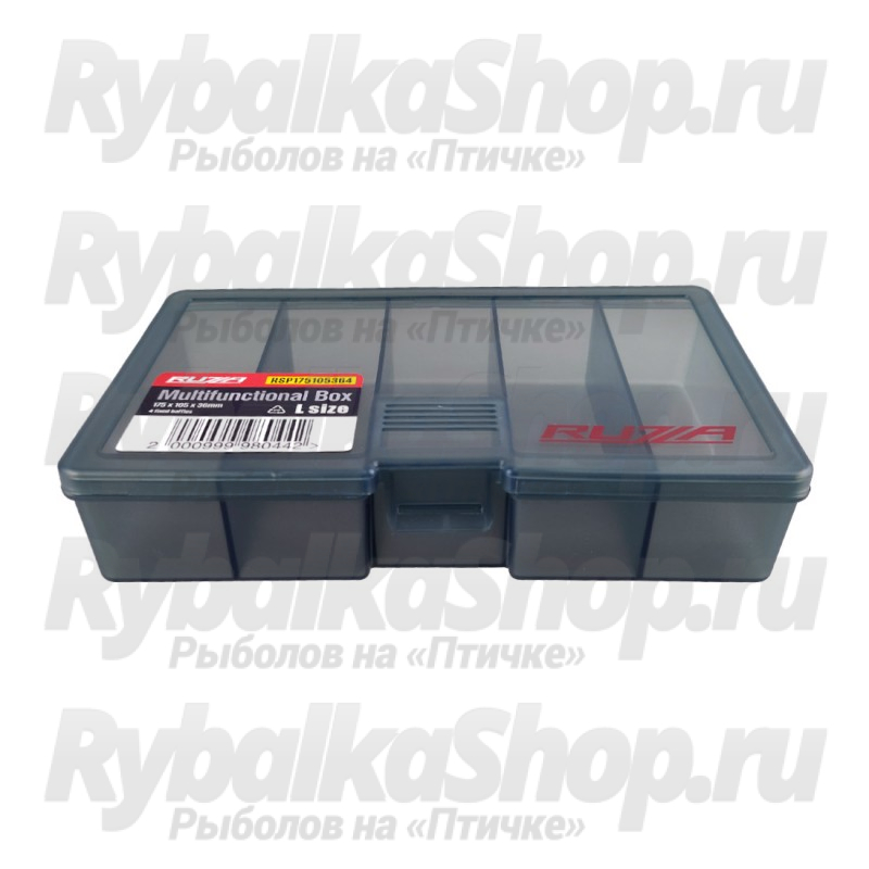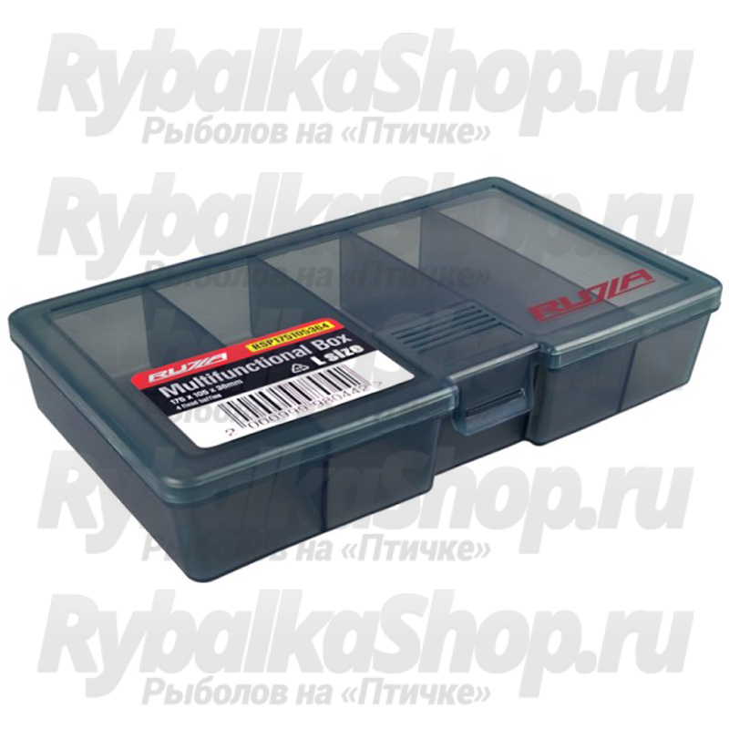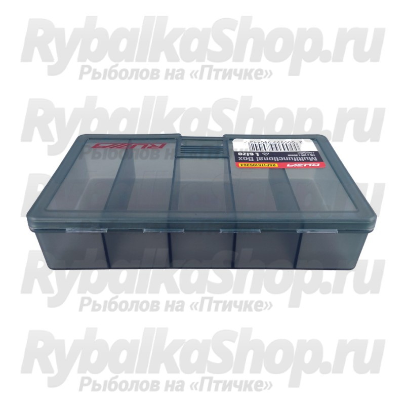 Односторонняя коробка Ruzza для хранения приманок и аксессуаров из ударопрочного армированного пластика PP (полипропилен).Коробка имеет четыре фиксированные перегородки, делящие ее на 5 самостоятельных отсеков.