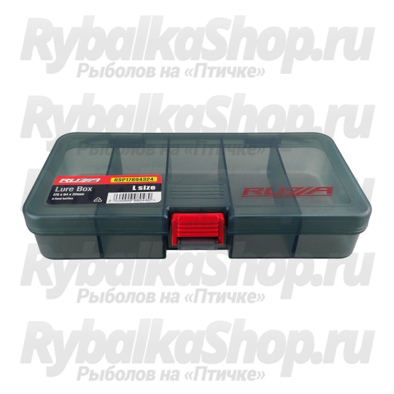 Описание Ruzza Коробка для приманок 178x94x32мм 4 перегородки