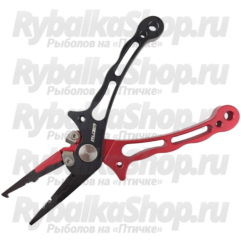 Алюминиевые плоскогубцы Ruzza имеют специальный «зуб» для разжимания заводных колец, приспособление для зажимания обжимных трубочек, оборудованы острейшими резцами, которые с легкостью перекусывают лески и шнуры. Длина 18см.