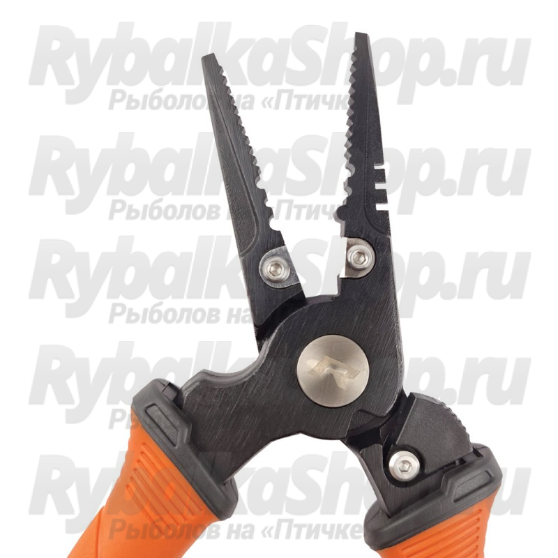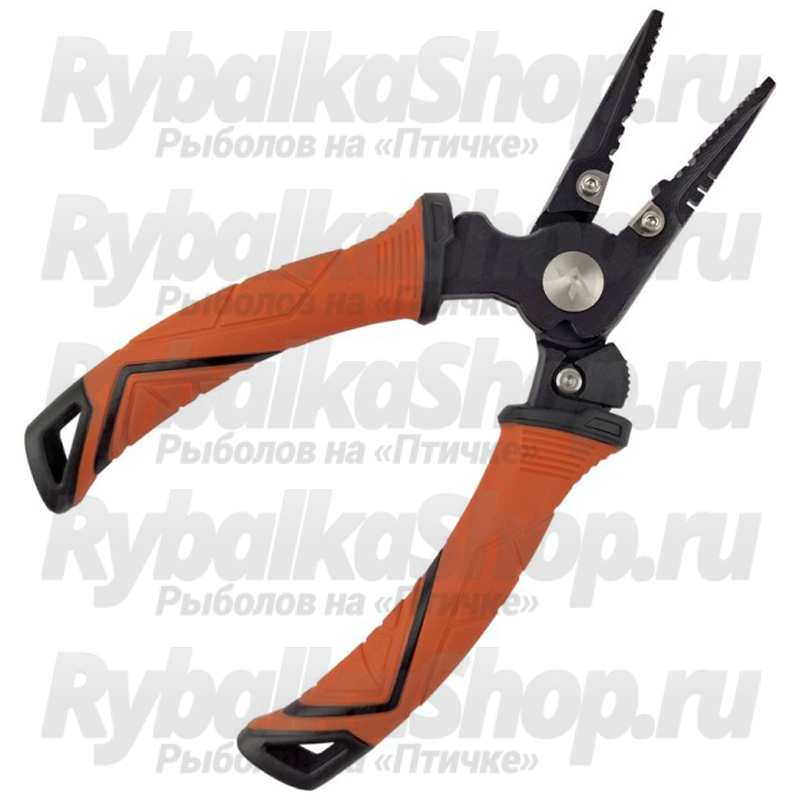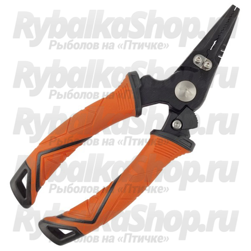 Плоскогубцы Ruzza из нержавеющей стали с удобными, антискользящими накладками на ручках. Имеют фиксирующий замок, приспособление для зажимания обжимных трубочек, правку крючков и поводков. Оборудованы острейшими резцами, которые с легкостью перекусывают лески и шнуры. Длина 18см.